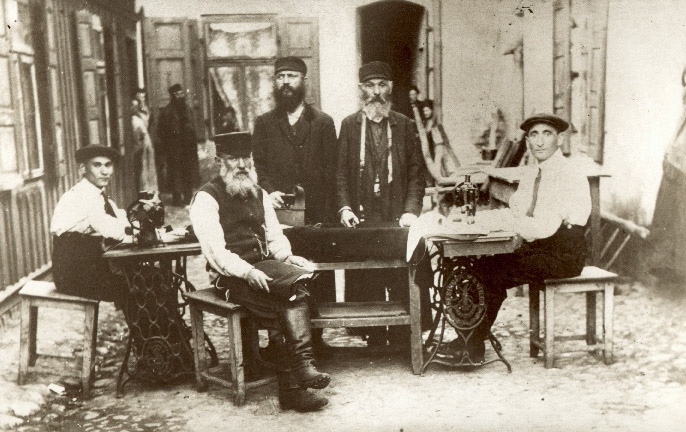 Wolborsky men (Israel and his father and brothers) at work in Lodz, Poland